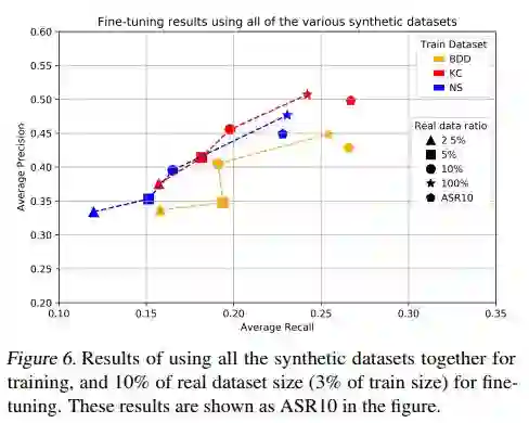 本文中,研究人员分析了使用大量合成数据和少量真实数据混合构成的数据集的训练效果。发现使用有限的真实数据并通过微调合成训练模型比混合训练的效果更佳。