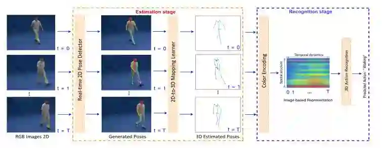 最近,研究人员提出了一种基于深度学习的多任务模型,用于基于RGB视频序列的关节三维人体姿态估计和动作识别。这种方法分为两个阶段。首先,研究人员设计并训练了一个实时二维姿态探测器来确定人体重要关键点的精确像素位置,并设计了一个双流神经网络来将检测到的二维关键点映射成三维姿态。