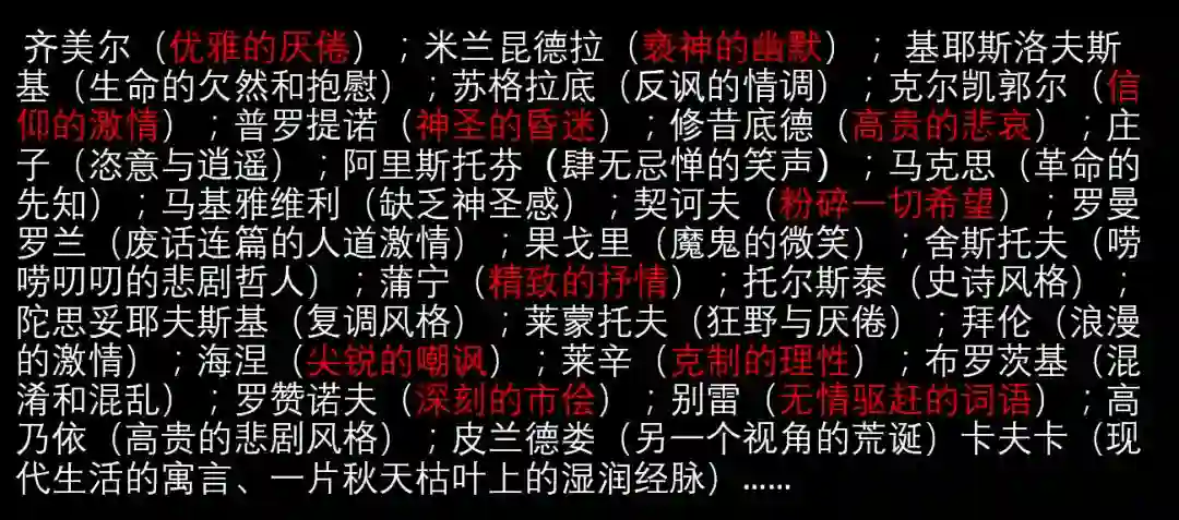 3,词语是需要配对的。不要让一个词语孤零零矗立在那,要给出进一步的反馈。我们可以看一下托尔斯泰是怎么写东西的。例如他写了一个将军头上有一个伤痕,一般人到此为止。但托尔斯泰进一步解释了这个伤痕,「伊斯马依尔式子弹擦过了他的头」。这还不够,他继续解释,「投入眼帘的还有他凸起的眼睛。」简单一句话就捕捉到了人物的性格。