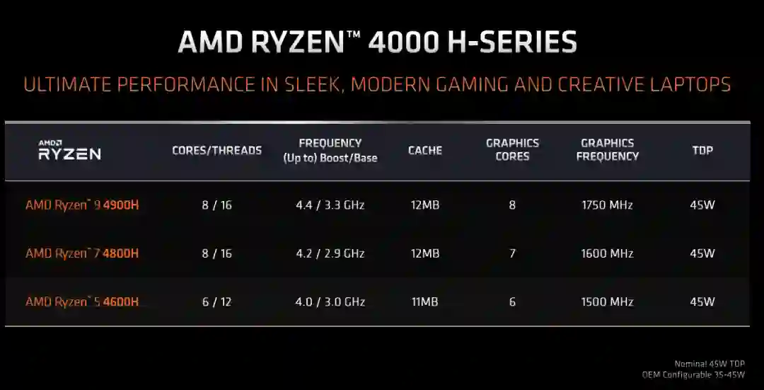 先来简单介绍下锐龙7 4800H,4800H基于7nm Zen2架构,采用了8核16线程,基础频率2.9GHz,加速频率为4.2GHz,TDP功耗45W,H的尾缀代表游戏本常用的标准电压处理器。
