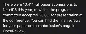 今年有10411篇论文提交到NeurIPS,有近2665篇论文接受,接受率在25.6%。