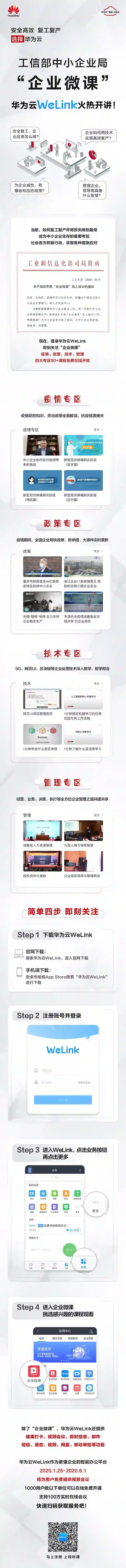 为了提高中小企业的管理水平、增强疫情防控知识、强化企业的抗风险能力,工业和信息化部中小企业局“企业微课”联合华为云在WeLink平台,开展免费线上培训,为中小企业送政策、送技术、送管理。