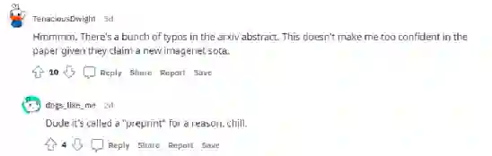 还有网友说arxiv上的论文摘要中有太多的拼写错误,让他感觉对论文的内容很没有信心。网友回复说,这就是预印的意思!
