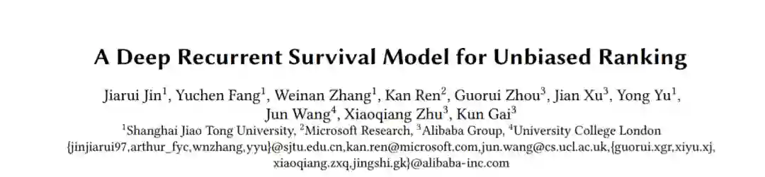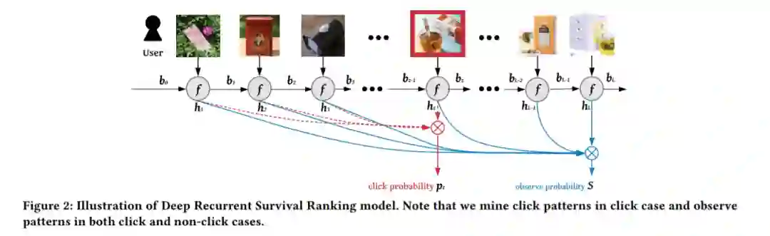位置偏差是信息检索中处理隐式但有偏差的用户反馈数据的关键问题。无偏排序方法通常依赖于因果关系模型,并通过反倾向加权消除用户反馈的偏差。这些方法虽然实用,但仍存在两个主要问题。首先,在推断用户单击时,上下文信息(如已检查的文档)的影响常常被忽略。第二,只考虑了位置偏差,忽略了用户浏览行为引起的其他问题。在本文中,我们提出了一个端到端的深度递归生存排序(DRSR),一个统一的框架来联合建模用户的各种行为,以 (i)考虑排序列表中丰富的上下文信息; (ii)解决隐藏在用户行为背后的问题,即,在没有任何点击的查询中挖掘观察模式(非点击查询),对不能真实反映用户浏览意图的跟踪日志进行建模(不可信观察)。具体来说,我们采用递归神经网络来建模上下文信息,并估计用户在每个位置反馈的条件似然。然后,我们将生存分析技术与概率链式法则相结合,以数学方式恢复一个用户的各种行为的无偏联合概率。DRSR可以很容易地与点和成对的学习目标结合起来。对两个大型工业数据集的大量实验表明,我们的模型与最先进的技术相比,具有显著的性能增益。