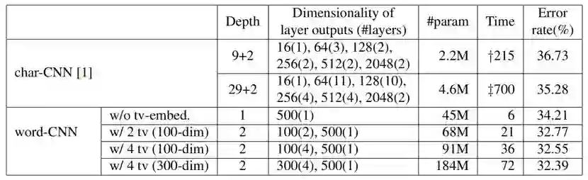 同样的,[2]也是做了一个没有什么意义的尝试,其作者精心为文本分类问题设计了一个character-level的深度卷积网,包括为其精调参数,却直接将设计完成的网络用在word-level的问题上,然后结果发现word-level的模型性能很差,显得好像word-level的模型是真的不能用深度CNN的哦,如果要用,请切换为char-level哦。看似让word-level和char-level保持同样的网络结构、层数和超参数是为了单一变量,实则恰好无视了no-free-lunch,私以为这样的比较结果是没有什么意义的。当然,这篇文章带来的数据资源以及其他贡献还是值得肯定的。