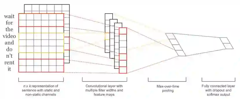 小夕曾经做过相关研究,当时做实验时首先用的是1层CNN1层全连接的word-level模型,也就是2014Kim[4]的这个俗称的TextCNN模型,如图1