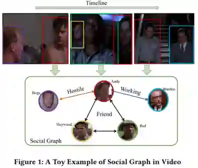 视频中人物的社交关系是视频理解的重要基础之一,它既可以帮助观众更好地理解视频内涵,也将支撑许多视频相关的应用,如视频标注、视频检索和视觉问答等。传统的方法主要分析可由视觉内容直接体现的空间或动作关系等,很少涉及到更高层的语义信息,如视频中人物社交关系图的生成。与此同时,现有的视频分析工作主要针对人工剪裁的富含语义的图片或短视频,但是在现实场景的长视频中,往往却包含着大量与人物关系无关的信息,不仅场景和人物频繁切换,社交关系的呈现方式也更为复杂。
