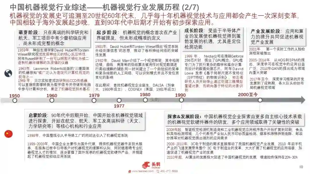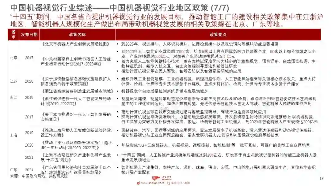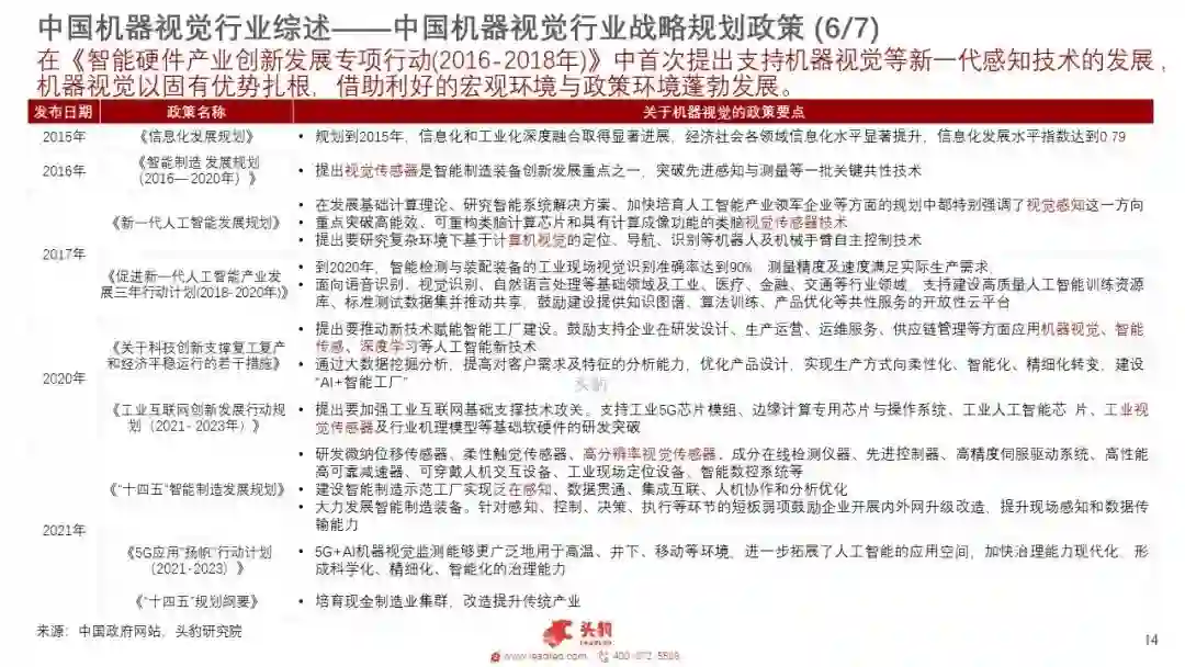 机器视觉人诞生于上世纪70年代末,并快速在全球范围流行和发展。近年来人口结构发生变化,制造业和建筑业用劳成本不断提高,大量的劳动密集型产业也在不断的转型与升级,现有制造模式不可持续或待突破,工业机器人由于具有更高的工作效率和极强的稳定性,可在较为复杂恶劣的情况下进行作业,在众多劳动密集型行业发挥重要的作用。
