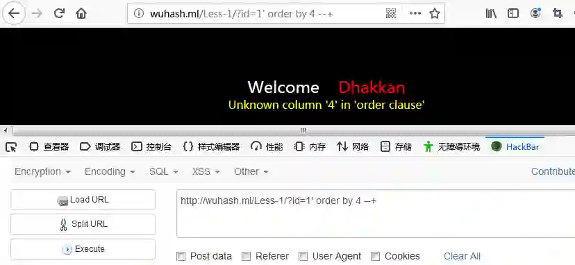 使用order by语句判断列数,实际上上order by语句的作用为对记过集按一个列或多个列排序,如果超过了列数产生报错导致页面异常。