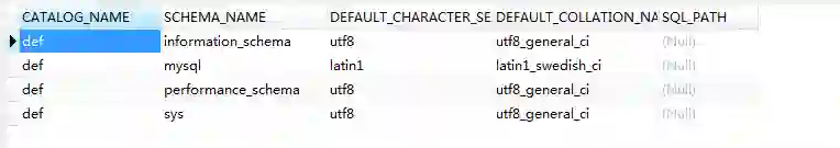 SCHEMATA表存储用户的数据库库名,记录的值位于SCHEMA_NAME列。