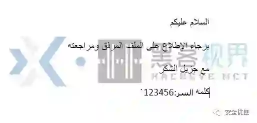 攻击者在7月15日到16日之间发送了鱼叉式网络钓鱼电子邮件。每封电子邮件都附带有一个受密码保护的RAR文件,名为“credential.rar”。如图1所示,电子邮件的正文是采用阿拉伯文编写的,并指示收件人解压缩附件以查看文档。正文内容还包括解压RAR文件所需的密码“123456”,而RAR文件则包含一个恶意的. iqy文件,名为“credential.iqy”。