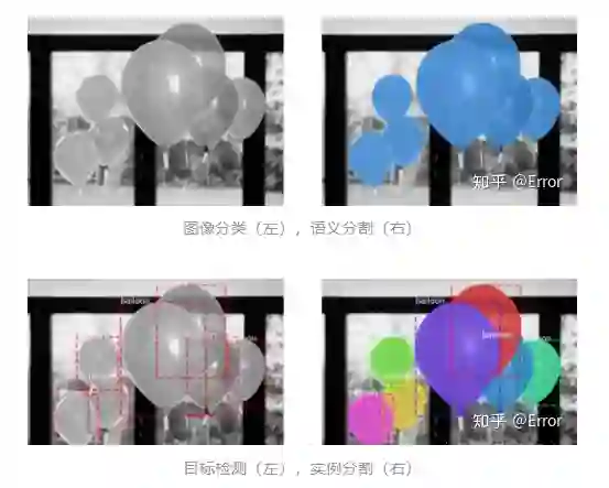 实例分割(Instance Segmentation):可以理解为目标检测和语义分割的结合。(eg: Mask R-CNN/...)相对目标检测的边界框,实例分割可精确到物体的边缘;相对语义分割,实例分割需要标注出图上同一物体的不同个体。