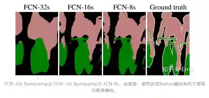 结果不够精细。进行8倍上采样虽然比32倍的效果好了很多,但是上采样的结果还是比较模糊和平滑,对图像中的细节不敏感。