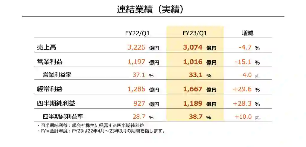 任天堂公开 2022~2023 财年第一季度财报(2022 年 4 月 1 日 ~ 2022 年 6 月 30 日),该季度任天堂销售额 3074.6 亿日元,同比减少 4.7%,利润 1016.47 亿日元,同比减少 15.1%。截至 2022 年 6 月末,任天堂 Switch 累计销量 1 亿 1108万台,软件销量 8 亿 6359 万份,本季度共售出 343 万台 Switch 与 4141 万份软件,其中 132 万台 Switch,152 万台 Switch Oled,59 万台 Switch lite。另外,知名爆料者 @Moore’s Law is Dead 透露,任天堂可能会在 6 个月内发布一款全新的 Switch 主机。另一位爆料者 @Pixelpar 称,新的 Switch(Pro)机型可能会在今年年底前发布。