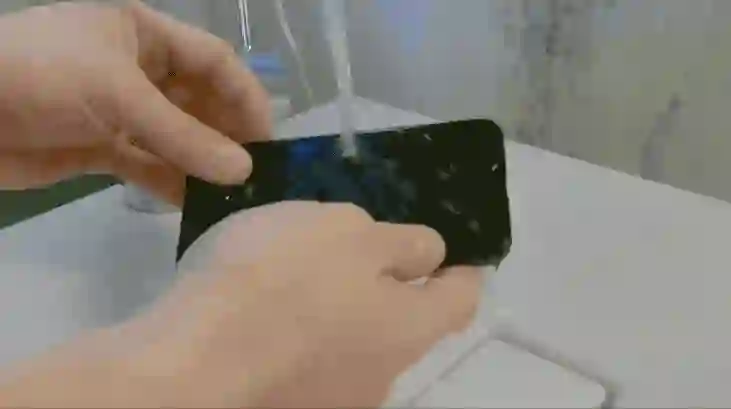 看起来直接面对水流,接口外面的水也没有渗透到手机内部。