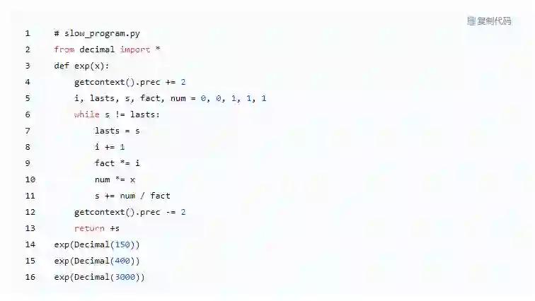 这是我将用于演示的程序,它计算 e 的 X 次方(摘自 Python 文档):