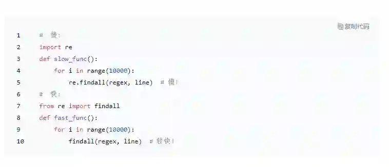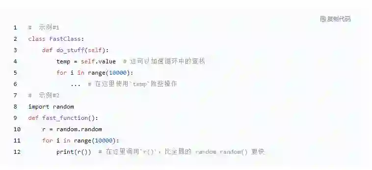 这与在每个作用域内查找变量的速度有关。我会写每个作用域,因为它不只关乎使用局部变量还是全局变量。查找速度也确实存在差异,函数中的局部变量最快,类级属性(例如 self.name)次之,而全局(例如导入的函数 time.time)变量最慢。