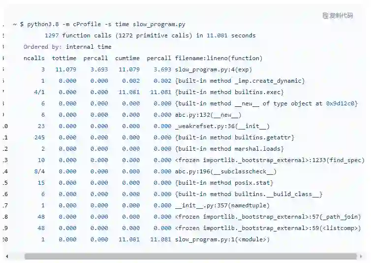 另一个极端是 cProfile,它提供的信息又太多了: