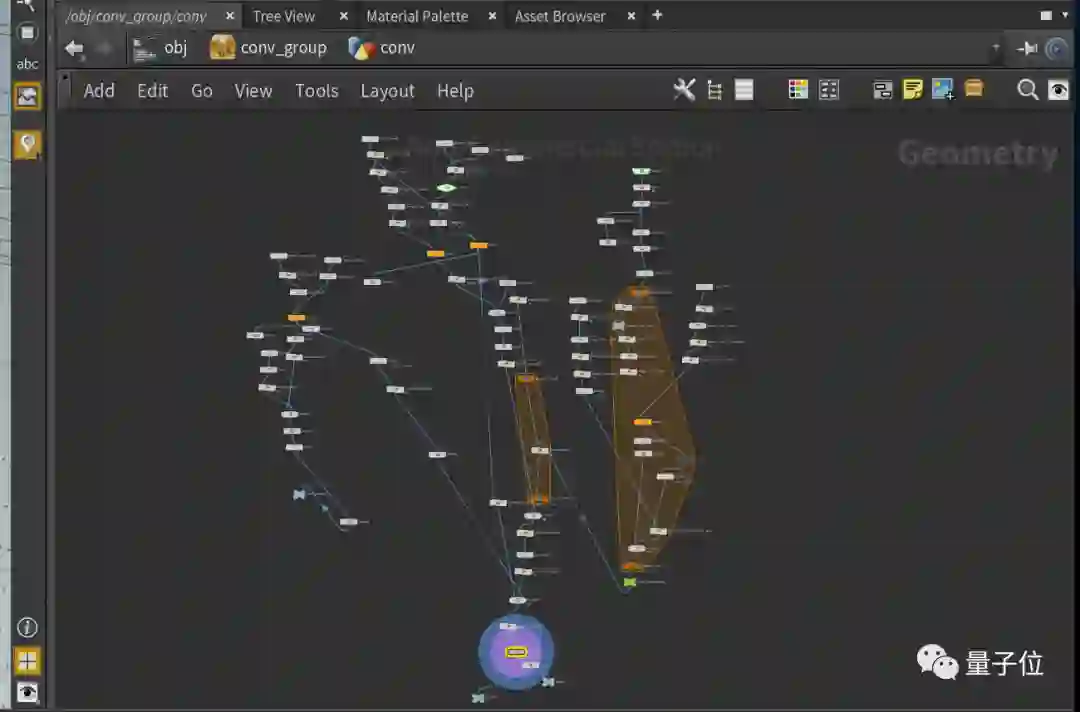 在正式上手Unity前,作者先在Houdini软件中,搭建了一个可视化的3D网络原型。