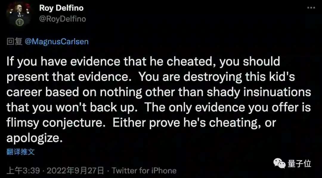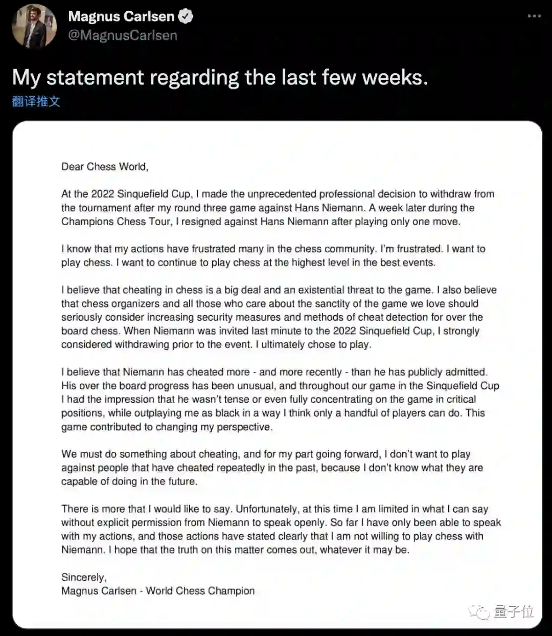 随后老卡哥选择退出比赛,并发推文暗指小汉斯在比赛过程中作弊。
