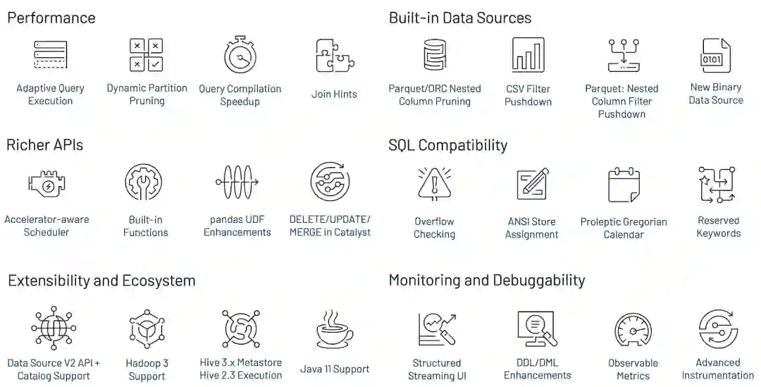 Spark 3.0 完成了 Hydrogen 项目的关键组件,并引入了新功能来改善流和可扩展性。