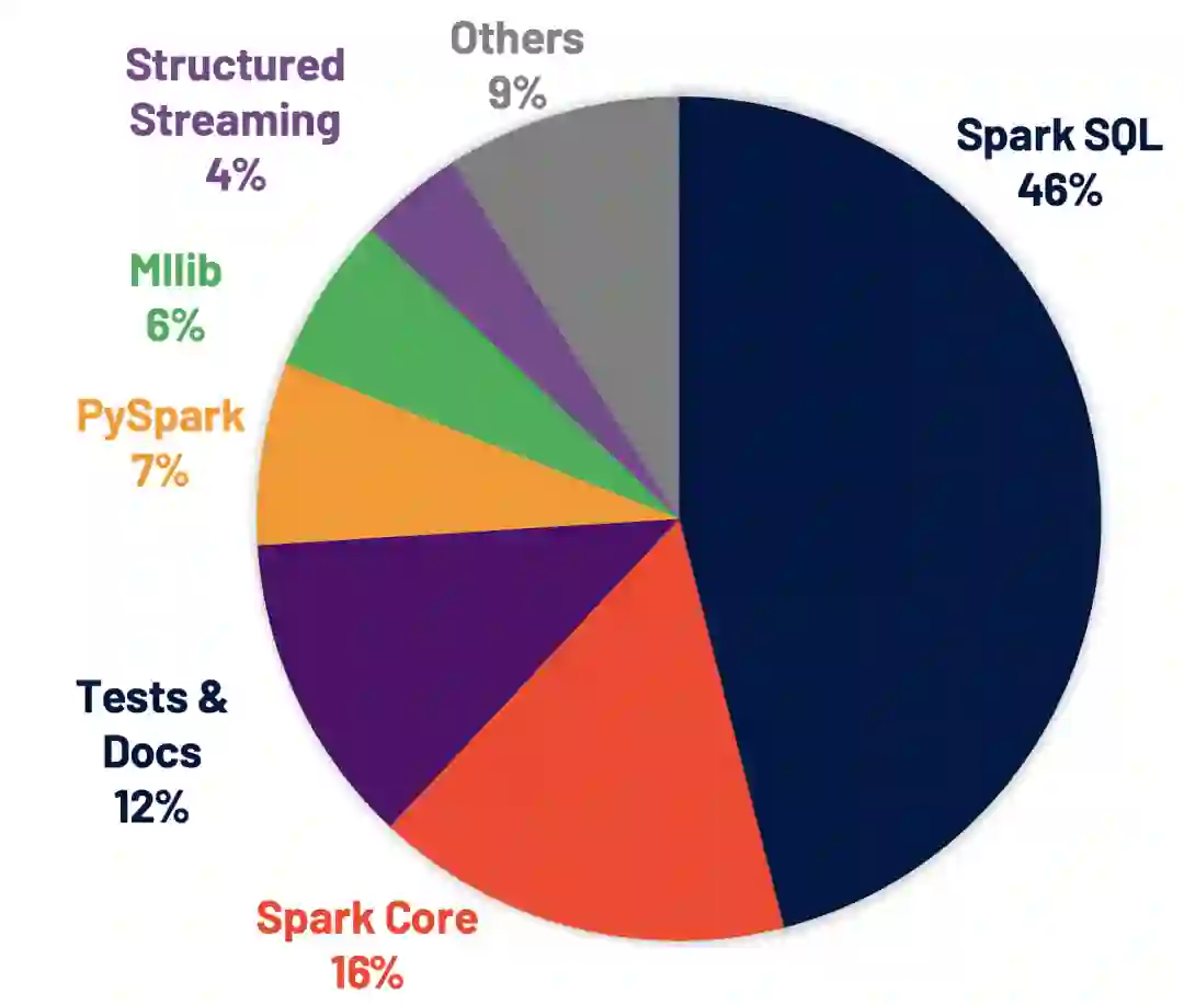 解决了 3400 个 Jira 问题,这些问题在 Spark 各个组件的分布情况如下: