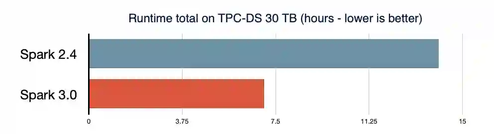 相比 Spark 2.4,性能提升了 2 倍,主要体现在自适应查询执行、动态分区修剪等方面;