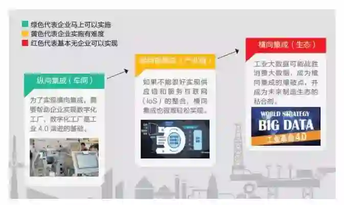 工业4.0中的三项集成包括:横向集成、纵向集成与端对端的集成。
