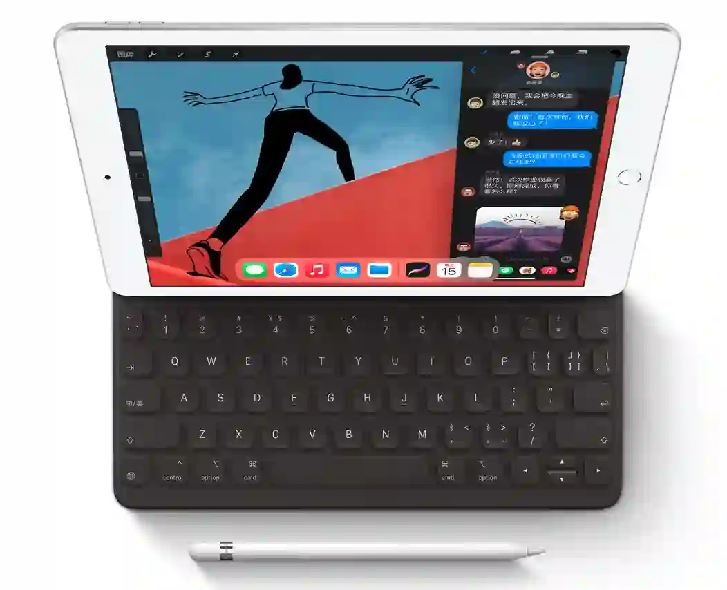 配件方面,iPad(第八代)支持 Apple Pencil 第一代和智能键盘,尽管不是二代,这些配件对于学生用户仍非常友好,能顺利实现书写、记录、输入等功能,而且价格更低。