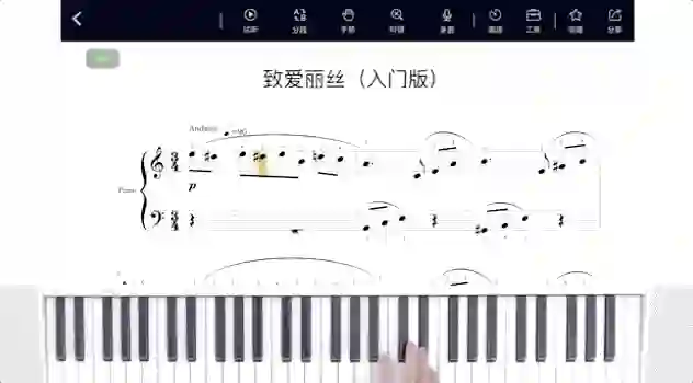 它会把一首乐曲拆分成很多小段落,让你从一小段旋律开始,反复跟弹、熟悉键位,直到最后可以脱离指示弹奏。
