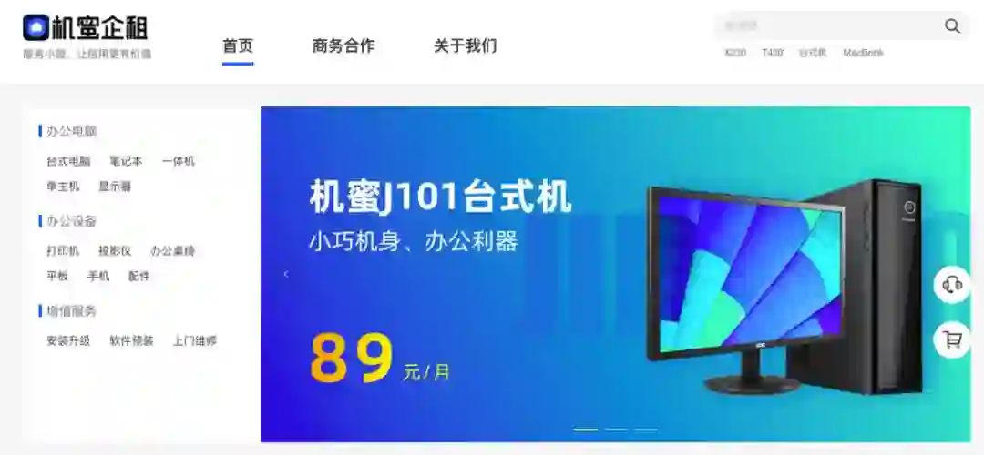 机蜜企租面向企业客户,未设定具体门槛,对实际勘察后满足风控要求的企业均提供0押金办公设备租赁服务,支持1台起租、按月起租(全新设备六个月)、租金月付,租赁期间负责所有维修保障服务。