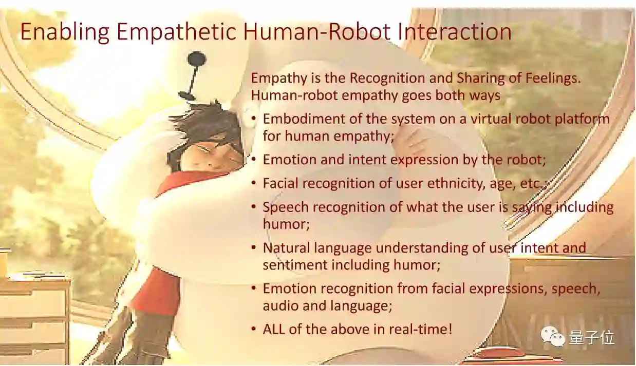 我们说的自然语言理解,在AI里是一个很大的领域,我们现在提出的“Natural Language Empathy ”,就是在自然语言理解里加入了情感、意向的识别,还有它的回答。