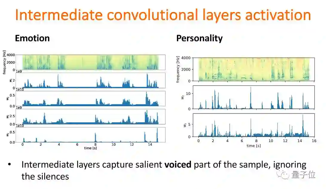 这是一个层次,emotion和personality。从低频到高频,发现在第一层开始的时候是在抽取energy、pitch、frequency等信息。
