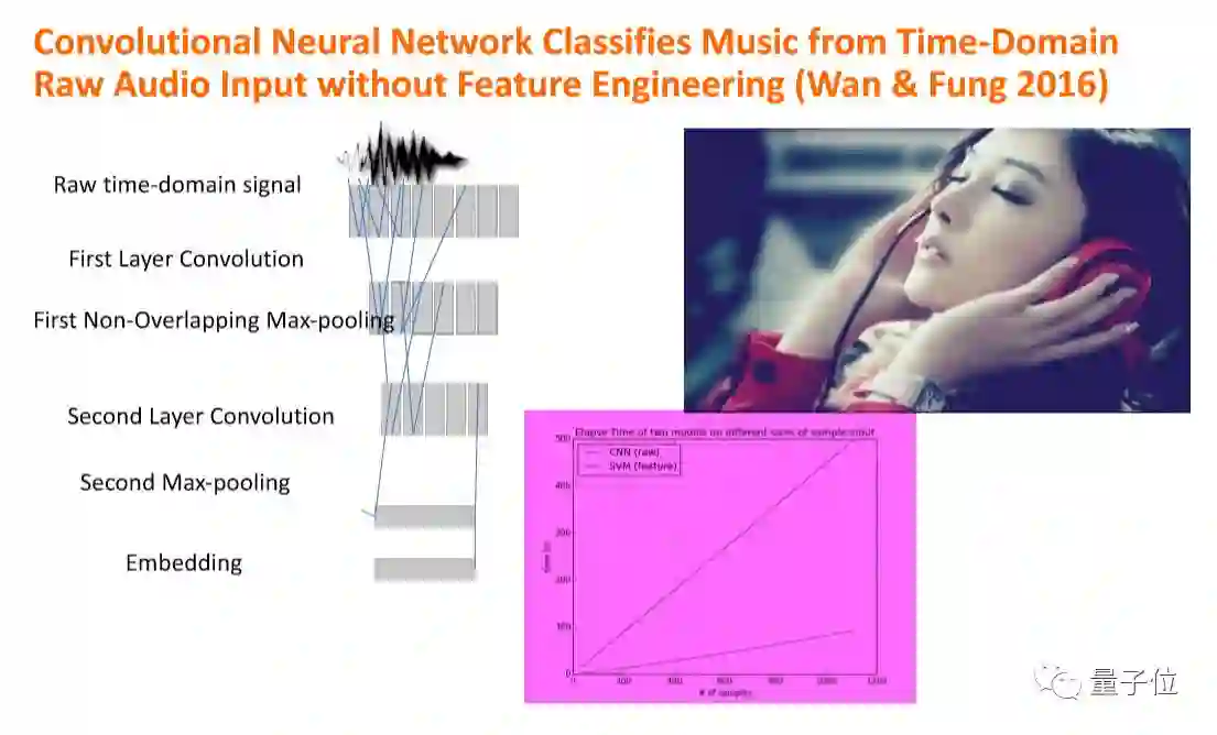 Deep learning的好处就是机器自动提取。那我们后来就把音乐做成一个样本以后,不做任何处理,直接放进去,看它能不能自己提取特征。