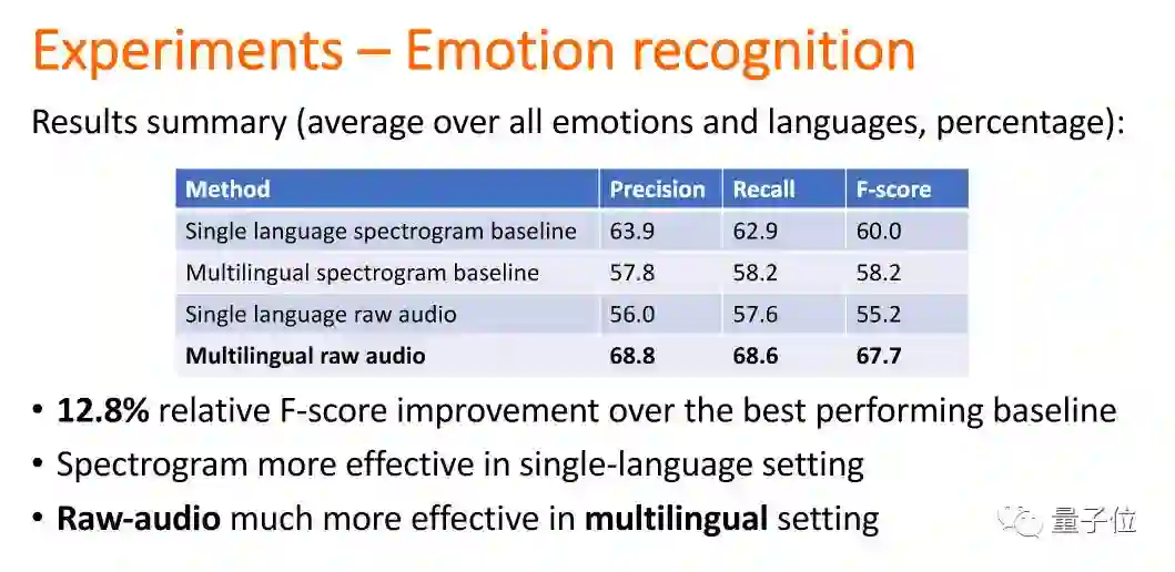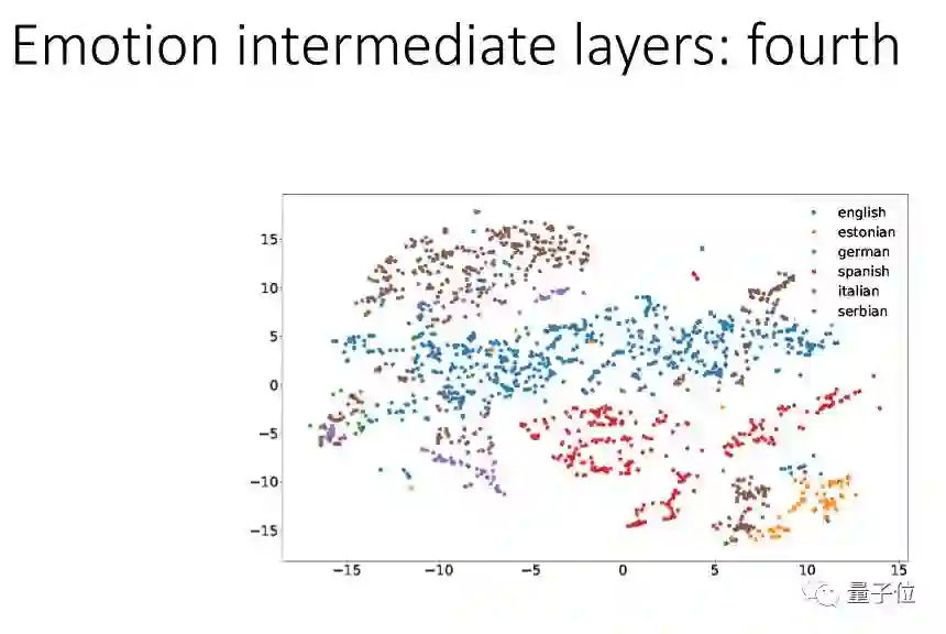 这个结果想告诉大家:在情感识别上,第一层如果用很多种语言来训练它,这种方式是好的,越到上层语言会分离。