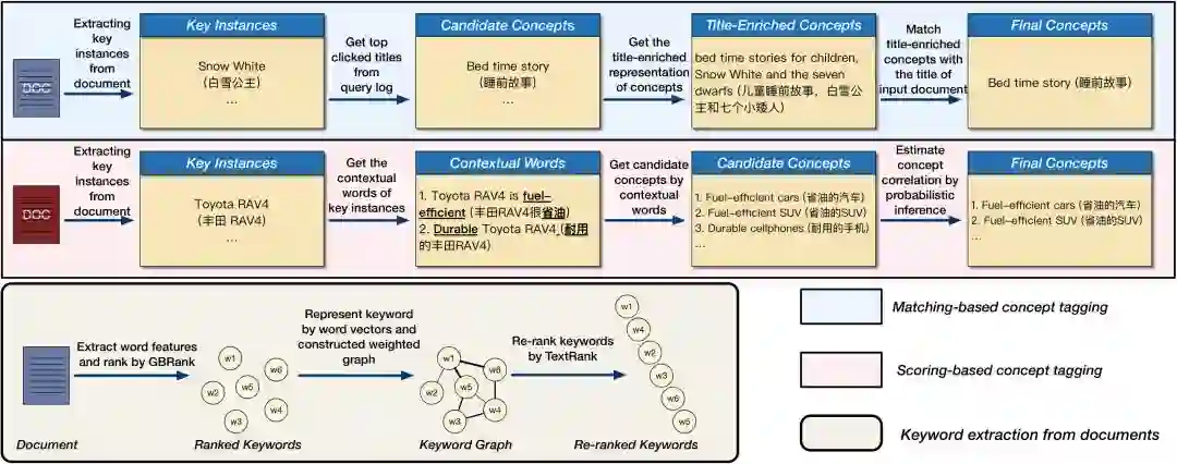 我们提出了两种策略来对长文章打上概念标签,丰富对文章主题的刻画;