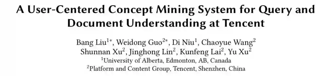 来自腾讯PCG移动浏览器产品部和阿尔伯塔大学的研究者构建了ConcepT概念挖掘标记系统,其利用query搜索点击日志从用户视角提取不同的概念,以便提高对短文本(query)和长文章(document)的理解,从而推动推荐,搜索等业务的提升。实验证明,ConcepT在 QQ 浏览器信息流业务中性能优异,曝光效率相对提升6.01%。目前,这篇长论文已经被 KDD 2019接收。