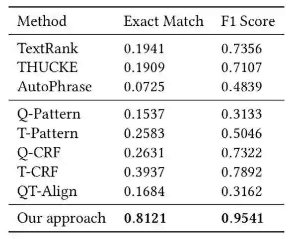 Query-Title Alignment. 这种方法利用对其输入的query和点击的文章标题来抽取候选概念。其提取query和文章标题中共有的N-gram作为候选概念,并且假设query中的N-gram在文章标题中可以有更丰富的描述。
