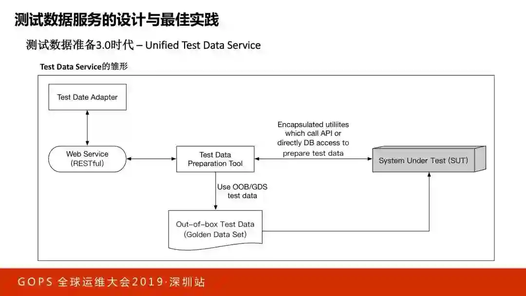 测试数据准备有很多的复杂性,时间原因不一条一条展开讲了。我们最终做了一个非常棒的解决方案,把它变成了一个统一测试数据服务,只要你告诉该服务需要什么数据,该服务就会就帮你生成想要的测试数据。怎么生成的?你什么都不用管,由这个服务全权负责。但统一测试数据服务也不是一蹴而就做出来的,我们也经过了很长时间的发展,我会讲一下这个发展历程,可能对大家开阔思路还是很有帮助的。