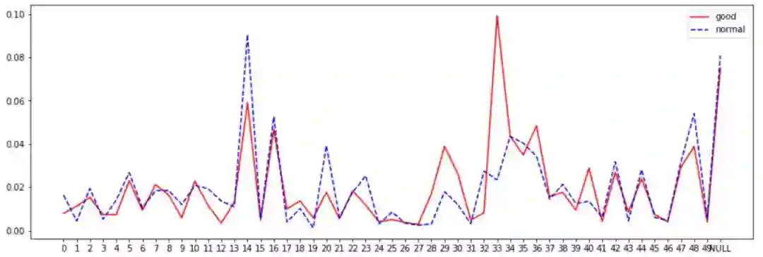 分析数据中客户说的话所处的状态的分布为:将保存下来的模型分别用于优秀经纪人和一般经纪人对话中客户说话状态的预测,分析相同状态下,优秀经纪人和一般经纪人给出的动作的差异。下图表示在客户状态为20时,优秀经纪人和一般经纪人做出的19种动作的分布: