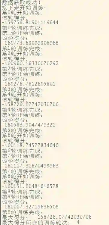 在模型训练中,我们训练10轮,选取其中得分最大的一轮训练结果作为预测的模型:例如上述图片展示的训练过程,选取第4轮训练的模型作为预测模型。