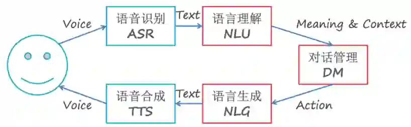 对话管理是对话系统中的一个关键环节,它在整个对话系统中的位置如下图所示:在上图中的对话系统流程中,首先是语音识别,产生语音识别结果;语言理解模块将语音识别结果映射成用户的意图、情感等信息;基于语言理解结果,对话管理模块决策需要执行的系统动作;基于对话管理模块的决策结果,语言生成模块生成适当的自然语言;语音合成模块将语言生成结果转化成语音反馈给用户这样就完成了对话系统的整个流程。由上述内容可知,对话管理模块是对话系统中的关键一环,它决定着后续内容的方向,因此,在对话系统中需要不断的优化对话管理模块的效果。