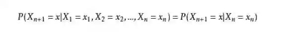 隐马尔科夫模型(Hidden Markov Model,HMM)是统计模型,它用来描述一个含有隐含未知参数的马尔科夫过程,其目的是从可观察的序列结果来确定隐含的参数,然后根据这些隐含参数确定的模型对数据进一步分析。所谓的马尔科夫过程是不具备记忆特质的,换言之,马尔科夫过程的条件概率仅与系统的当前状态相关,而与它的历史或未来的状态是独立、不相关的,用数学语言可以描述为:具备离散状态的马尔科夫过程通常被称为马尔科夫链,一个马尔科夫链的结构如图: