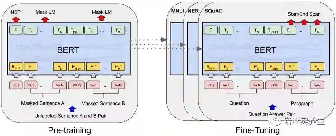 在具体的一个下游自然语言理解任务上,BERT经过在该任务上的微调就能够将预训练学到的语义信息成功迁移到下游任务上。诺亚方舟实验室的中文预训练语言模型NEZHA(哪吒)基于BERT在模型,预训练任务和训练算法三个维度进行了改进。