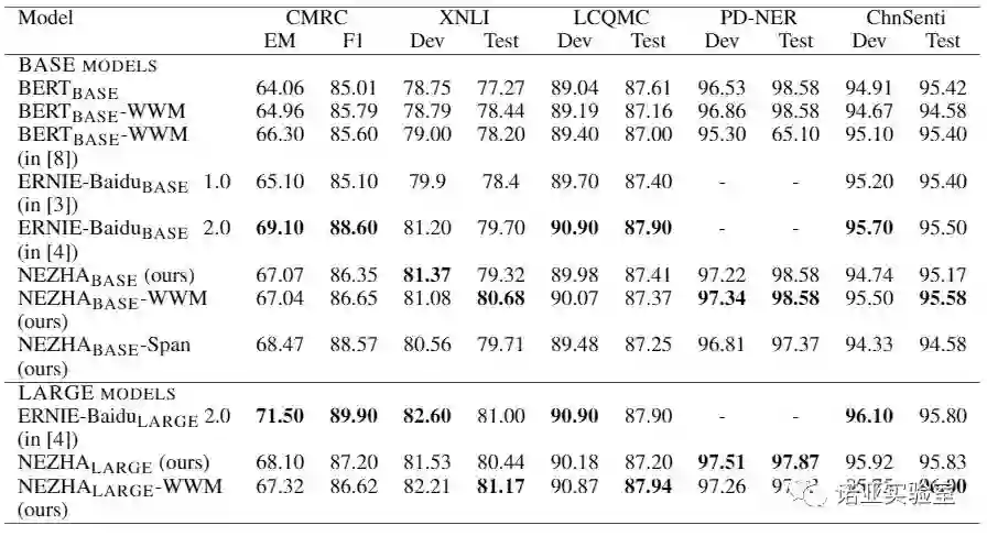 当前版本的NEZHA基于BERT模型,并进行了多处优化,能够在一系列中文自然语言理解任务达到先进水平。