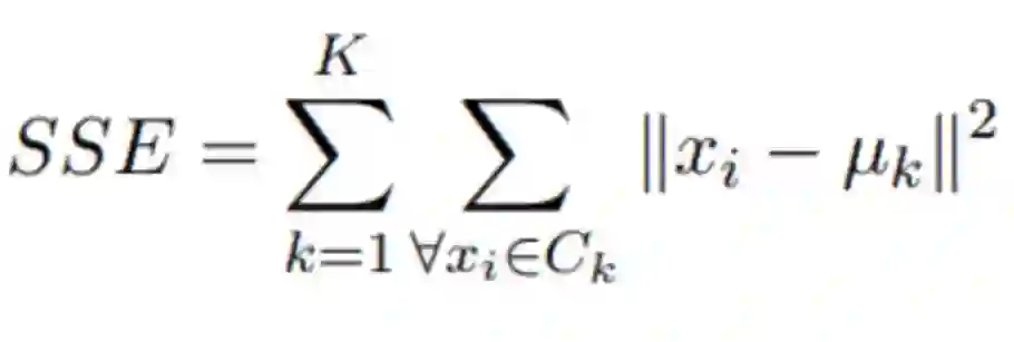 这个公式是什么意思?平方误差和(SSE)是一种聚类度量指标,其思想非常简单。它是一个计算数据中每个实例到其最接近质心的平方距离的值。算法优化的目标是尽量减小这个值的大小。