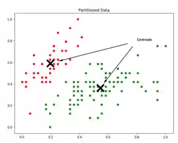 如何划分数据以达到上图所示的分区效果?聚类过程的输出是一组质心。质心是每个分组的代表实体,所以如果数据有 k 个分区,那么它有 k 个质心。