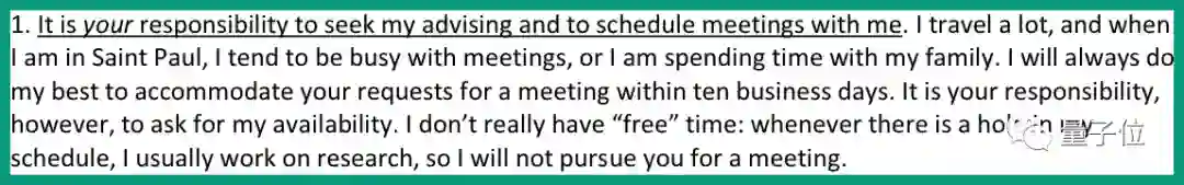 包括要主动约老师讨论课题、学生自己学习读文献&写论文、需要工作推荐信请提前两周提出……