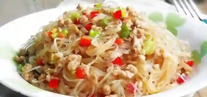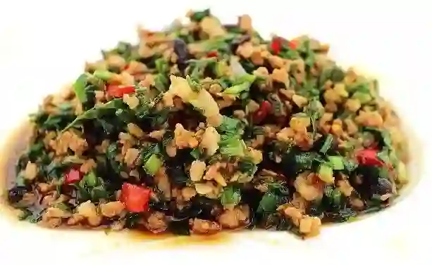这也是一道有迷之菜名的菜肴,实际上就是粉丝炒肉末。因为用筷子夹起粉丝的时候,往往会沾带起几个肉末,犹如蚂蚁从树干上往上爬,故而得名“蚂蚁上树”。