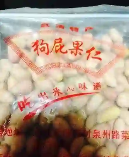 狗屁果仁在天津也算小有名气的吃食,果仁是天津土语里花生米的称谓。狗屁果仁出自武清黄花店的一家卖干果的店铺,现在已经传到第三代,其中第二代店主外号叫“狗屁”,因为他家炒果仁味道好,人们就用店主的外号也给果仁起了名。